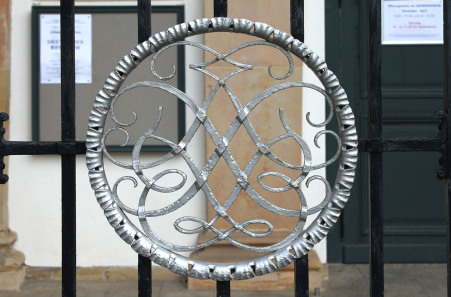 Und noch ein Bach-Siegel-Bonus: Dieses hübsche Geschnörkel ziert das Tor zur Georgenkirche in der Stadtmitte von Eisenach. Nicht ganz ernst gemeint ist das dann, wieder in einer weiteren Variante, das achte Bach-Siegel. © Christian Hoske.