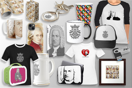 Sie möchten ein Musik-T-Shirt verschenken oder ein Bach-T-Shirt? Dann sind Sie bei „Spreadshirt“ am besten aufgehoben. Musikkalender und Bachbüsten sowie einige verlagstypische Angebote gibt es bei „Bach 4 You“. Unzählige weitere Musikgeschenke gibt es: von Baseballcaps, Handyhüllen, Bierkrüge, Tassen und Kissen bis hin zu Bettwäsche. Am spannendsten ist's bei „Zazzle“. Mit einem Klick kommen Sie von hier nochmals zur Auswahl an Shops unserer Mission..