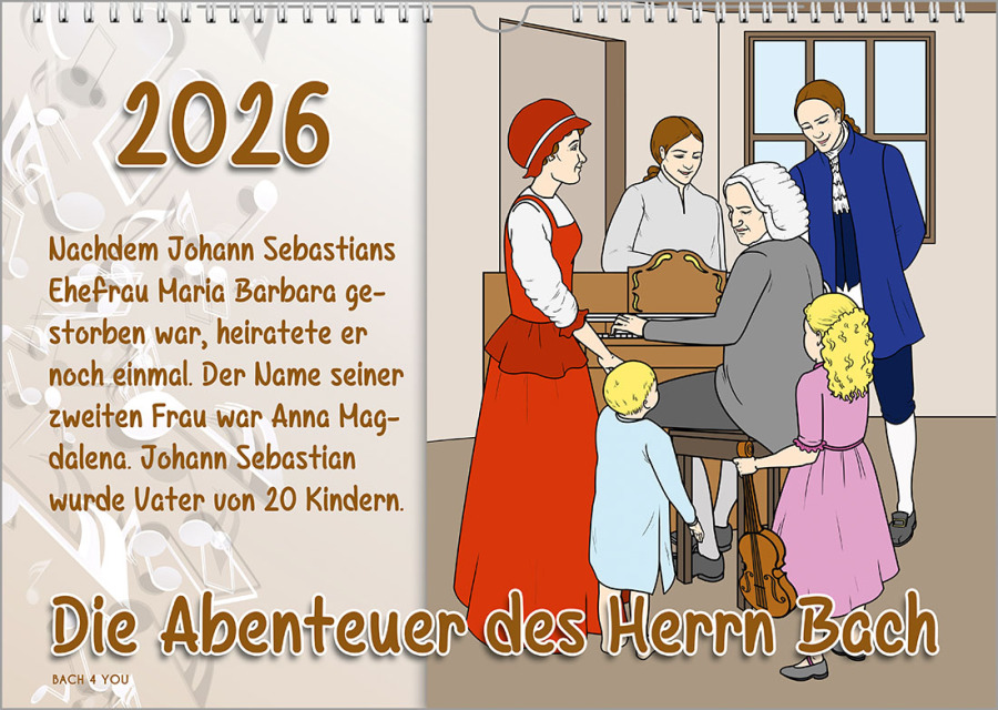 Das bietet „Bach 4 You“ auch an: Bach-Kalender für Kinder und junge Erwachsene. Und Musik-Kalender für Kinder und junge Erwachsene. Immer drei Größen. Dieses Jahr und nächstes Jahr. Zum Shop..