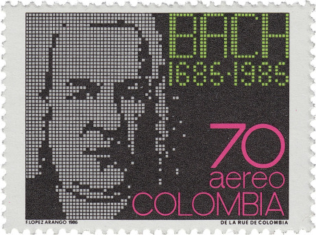 Johann Sebastian Bach auf Briefmarken aus Südamerika: Kolumbien..