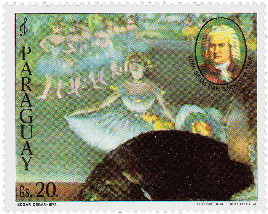 1980 Paraguay. Eine Bach-Briefmarke ... zwei Irrtümer. Nun, erstens schrieb der Thomaskantor niemals ein Ballettwerk. Zweitens lebte Bach nicht von 1714 bis 1788. Und wer tat das stattdessen?