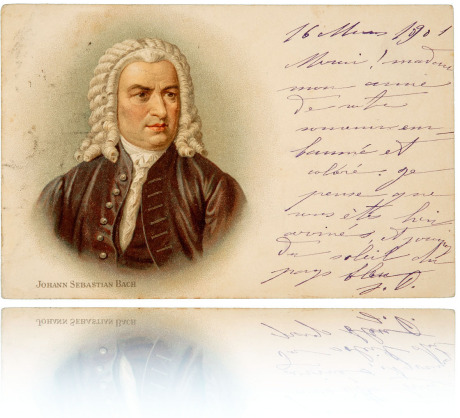 바흐의 모습은 그런 모습이 아니었죠. 하지만 누가 신경이나 쓸까요? 우리는 이 고대의 "보석"을 사랑하니까요. 이런 역사적인 엽서를요.