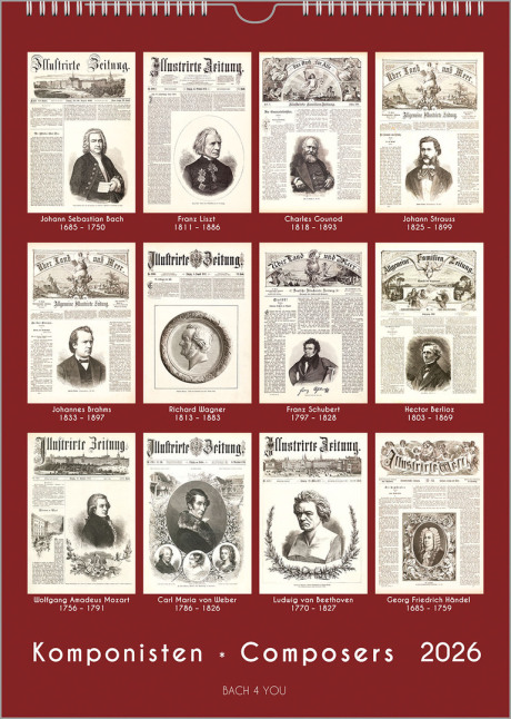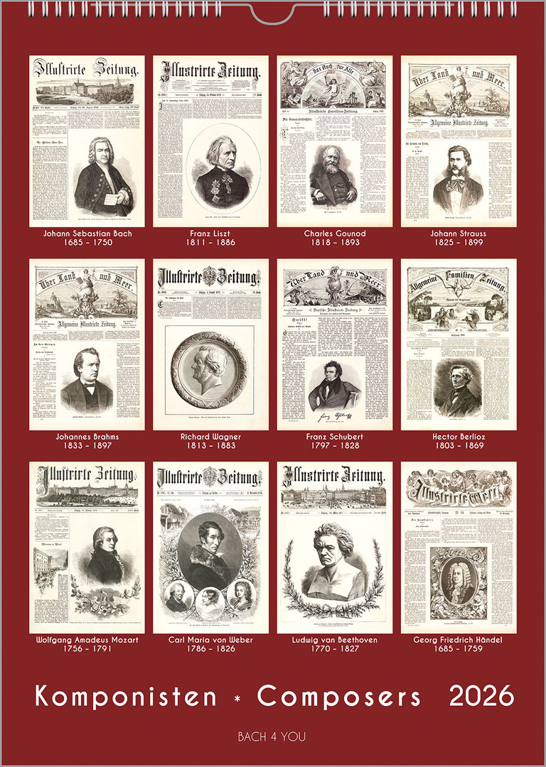 Ein Komponisten-Kalender auf der Bachchöre-, Bachorchester- und Bachvereine-Seite? Richtig. Alle 60 Kalender gibt's in drei Größen. Dieses Jahr und nächstes Jahr. Zum Shop. Und ja, es ist auch ein Musik-Kalender..