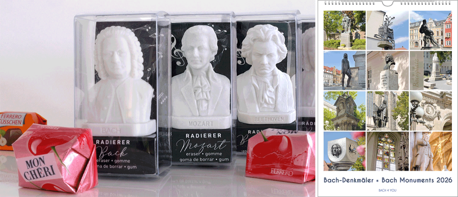 Bach-Geschenke: Bach-T-Shirts, Bach-Kalender und Bach-Tassen ... zum Beispiel..