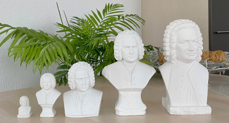 Jetzt ist die kleine Bach-Radierer-Büste mit dabei. Was ist das Wichtigste? Der spannende, seriöse Gesichtsausdruck von Bach. Hier geht's zu den Bach-Büsten..