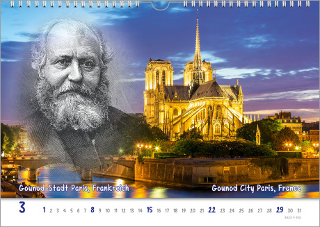 Manche Komponisten haben in einem Kalender einen zweiten oder sogar einen dritten „Auftritt“. Es sind, in diesem Komponisten-Kalender, nicht immer drei Musiker pro Monatsblatt. Und sie sind auch nicht immer ähnlich angeordnet..