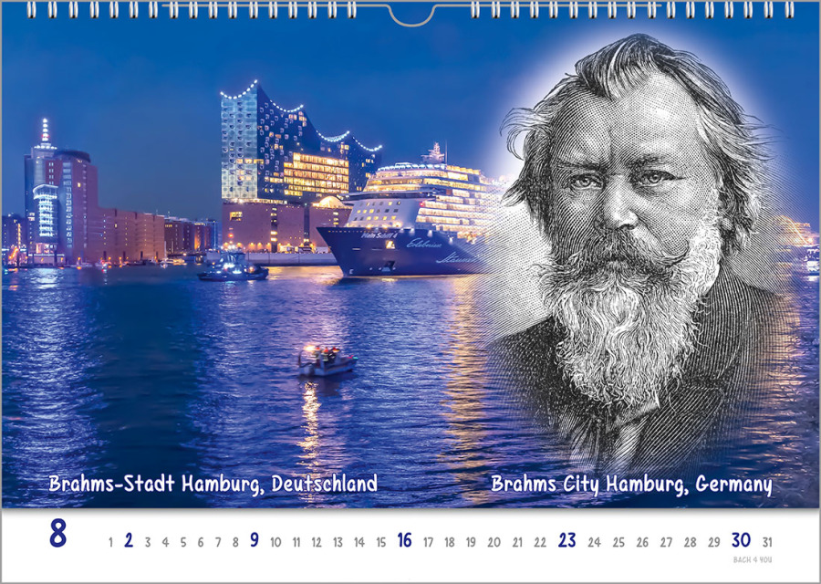 Wenigstens einen Kalender wollen wir hier komplett vorstellen. Es ist der Komponistenkalender „Komponisten, Städte, Blaue Stunde“. Passend zum Titel, ein Bild weiter oben..