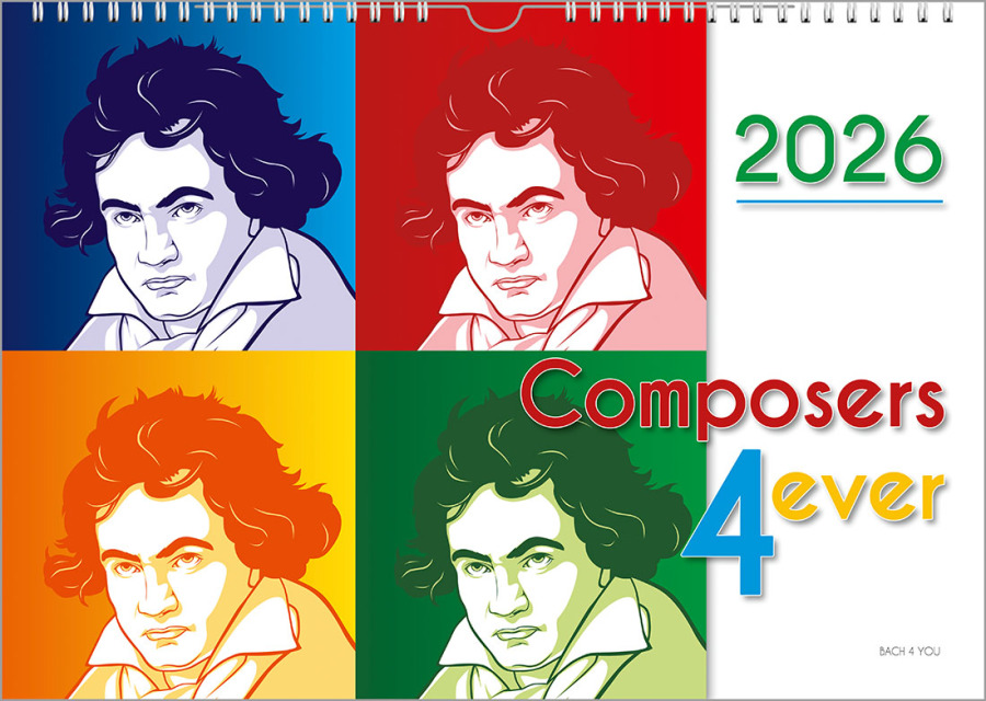 20 Komponisten-Kalender. Da gibt es sehr konservative und auch sehr schrille. Und in drei Größen als Posterkalender und Broschürenkalender..